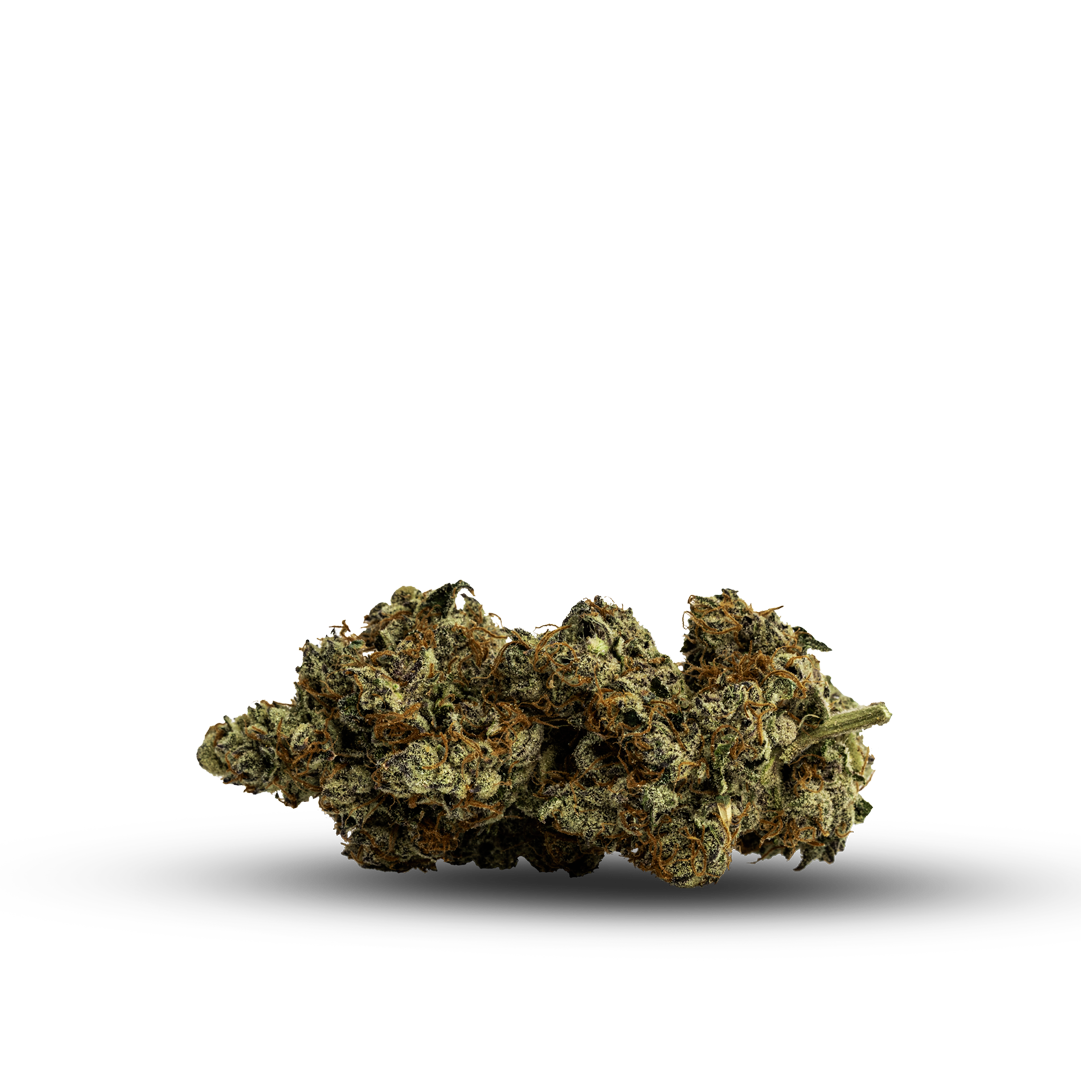 Earth, pine, and spice come together in a bold, heavy-hitting Indica with a smooth, full-bodied finish. The buds are dense and coated in trichomes, glowing with deep green and amber hues. This strain’s rich aroma and strong flavor showcase Fade’s gas-driven craftsmanship at its finest.