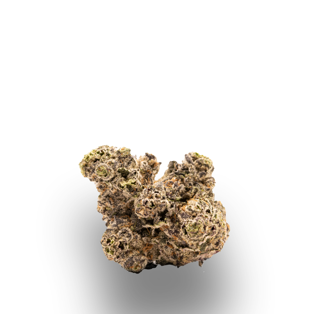 A cross of LA Pop and Moonbow creates this Indica-leaning hybrid known for its vibrant candy sweetness and smooth gas finish. The buds are dense and frosty, covered in trichomes that highlight purple and green tones. Its aroma blends fruit, cream, and fuel with a dessert-like finish. Fade Co. cultivates this strain to showcase high flavor expression and clean structure.