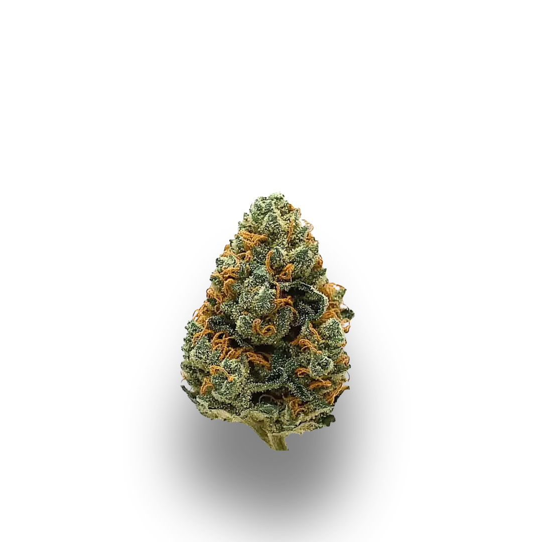 Sweet cherry, cookie dough, and gas combine for a smooth, dessert-style hybrid with rich flavor. The buds are dense and frosted, glowing with deep green and purple hues beneath a heavy trichome coat. Pink Cookies delivers Fade’s signature candy gas sweetness with a creamy, balanced finish.