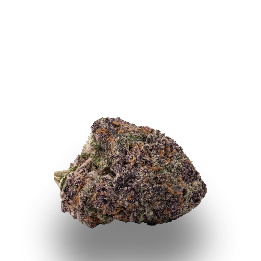 A cross of Girl Scout Cookies and Grand Daddy Purp, this Indica-leaning hybrid delivers dessert sweetness with classic purple flavor and structure. The buds are dense and resin-rich, glowing with violet and deep green hues beneath a frosty layer. Its aroma blends grape, vanilla, and fuel, offering a flavor that’s both rich and balanced. Fade Co. cultivates this strain to showcase sweetness, color, and polish.